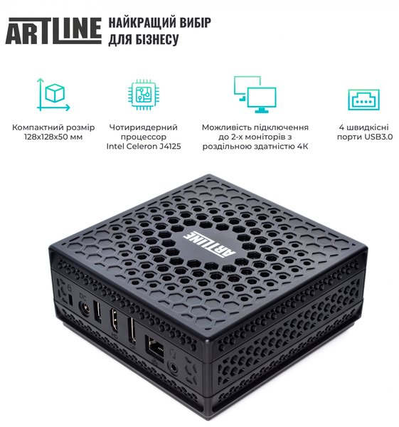 ARTLINE Business B14v08Win+B24F75-VA – это комплект из двух позиций: офисного неттопа и современного 23.8-дюймового монитора.