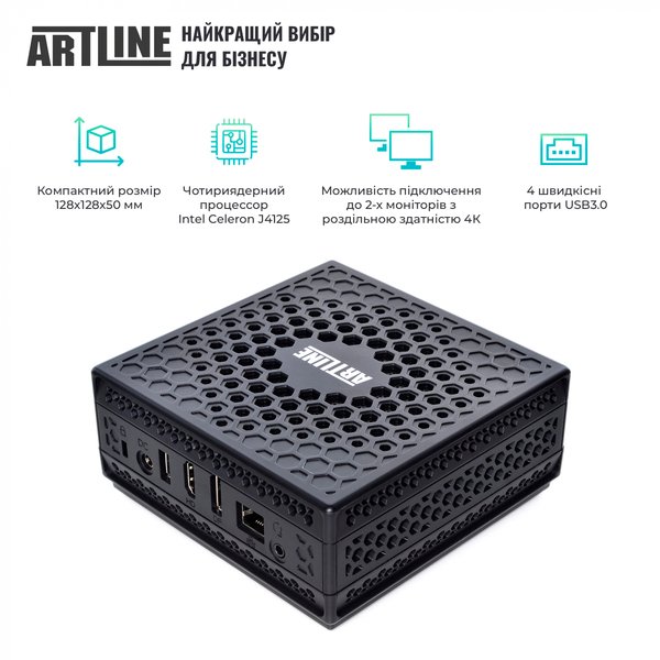 ARTLINE Business B14v09Win+B24F75-VA – это комплект из двух позиций: офисного неттопа и современного 23.8-дюймового монитора.