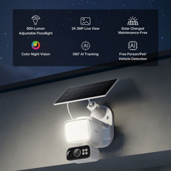 - Комплект умной безпроводной камеры TP-LINK TAPO C615F KIT 2K QHD и солнечной панели (TAPO-C615FKIT)