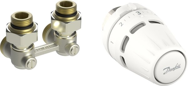 Похожие товары Комплект термостатический Danfoss Regus M30x1.5 + RLV-KB, 1/2", угловой
