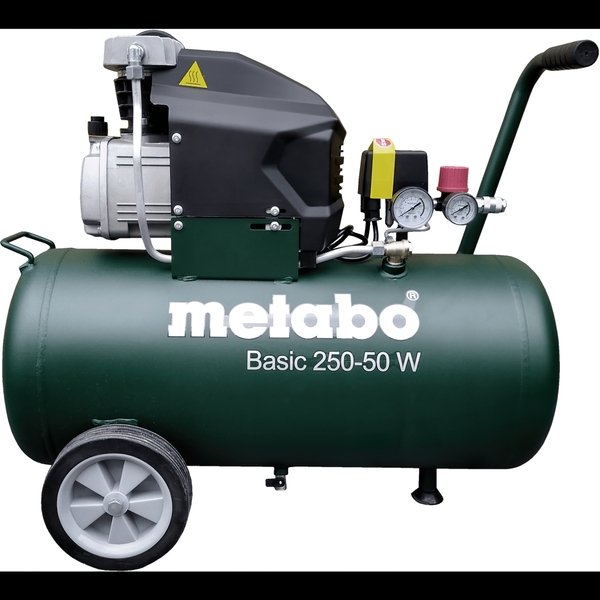 Компрессор Metabo Basic 250-50 W версия компрессора Metabo Basic 250 с ресивером емкостью 50 литра. Модель появилась на рынке весной 2014 года и представляет собой профессиональную машину начального уровня рассчитанную на выполнения несложных задач.