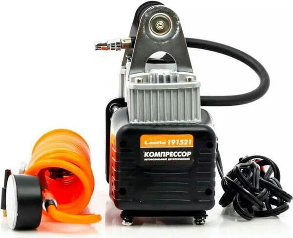 - Компрессор Lavita 12В, 22А, 10Атм, 60 л/мин, двухпоршневый, клеммы, шланг 5м. (LA_191521)