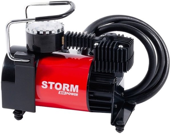 Storm это электрический автомобильный компрессор, выполнен в основном из металла, есть также пластиковые и прорезиненные вставки. Компрессор оснащен прорезиненными ножками для устойчивости. Надежный и недорогой в тоже время очень качественный автомобильный компрессор Storm подойдет для использования в автомобиле и в быту, сохранит ваше время и силы. Компрессор предназначен для накачки шин автомобиля и мотоцикла, мячей, лодок.