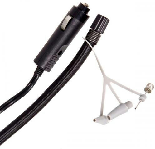 Подключается к гнезду прикуривателя, рабочее напряжение составляет 12 В. Также имеются переходники для разных типов подключения, в том числе для подключения к аккумулятору авто с помощью клемм. Данный компрессор способен выдержать интенсивную работу благодаря уникальной охлаждающей конструкции корпуса.