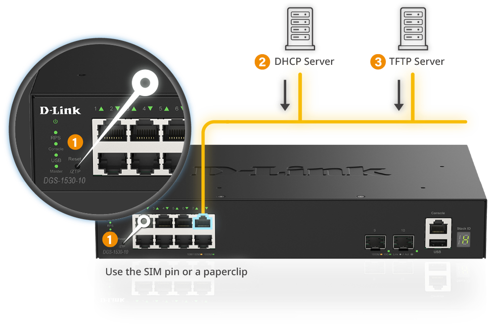Zero-Touch Provisioning (ZTP) упрощает настройку, позволяя устройствам автоматически конфигурироваться без ручного ввода. Просто удерживайте кнопку сброса в течение 5–10 секунд, чтобы запустить перезагрузку и настройку. ZTP ускоряет развертывание, минимизирует ошибки и обеспечивает единообразную конфигурацию, что идеально подходит для крупных сетей.
