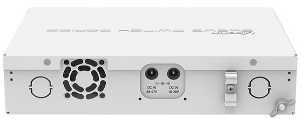 Данное устройство комплектуется блоком питания 28V, 3.4A, а также на задней панели корпуса находится дополнительный разъем постоянного тока, который поддерживает источник питания 48-57 V (не входит в комплект, приобретается отдельно). Вы можете использовать любой из них или оба входа одновременно. CRS112-8P-4S-IN может запитывать устройства по стандарту 802.3af/at, при подключении его 48-57 V постоянного тока (устройство автоматически обнаружит и обеспечит правильную мощность для устройств). Сила максимального тока составляет 1 А на порт при входном напряжение 18-28 V, 450 mА, при 48-57 V. Общий предел составляет 2.8 А - 24 V и 1.4 А - 48-57 V.