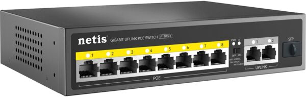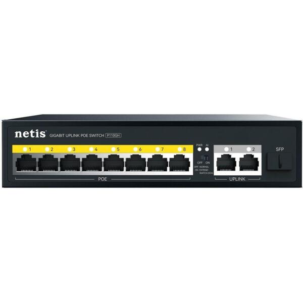 - Коммутатор Netis P110GH 8xFE PoE, 3xGE (2xUplink, 1xSFP), 120Вт, Неуправляемый (P110GH)