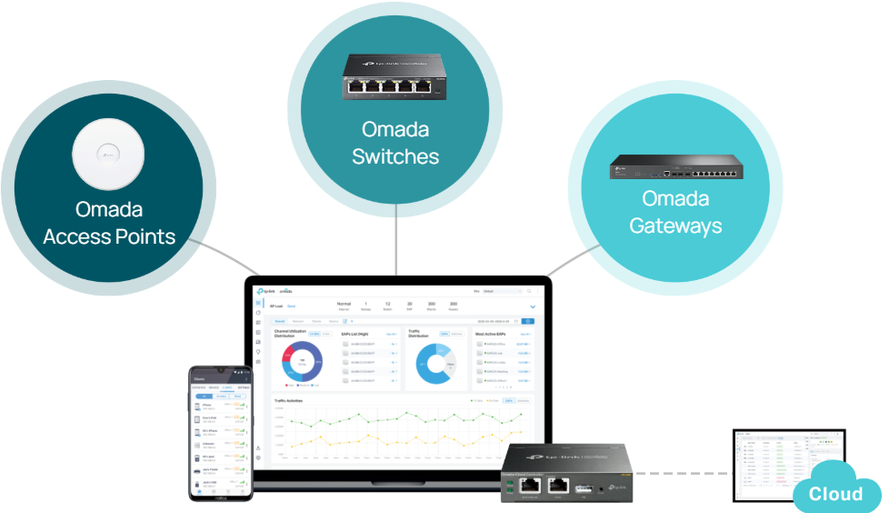 Удаленно управляйте своими точками доступа, коммутаторами и шлюзами на нескольких сайтах с помощью единого интерфейса.