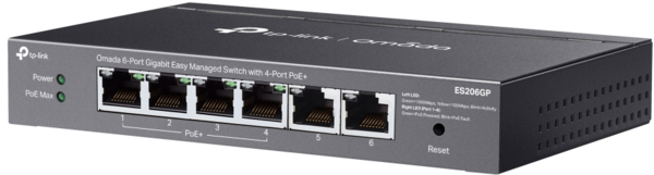 - Коммутатор TP-LINK ES206GP 6xGE (4xPoE), 65W, WebSmart (ES206GP)
