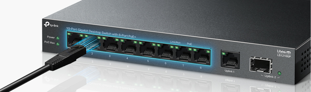 - Коммутатор TP-LINK LS1210GP 9xGE (8xPoE), 61 Вт, 1xSFP (LS1210GP)