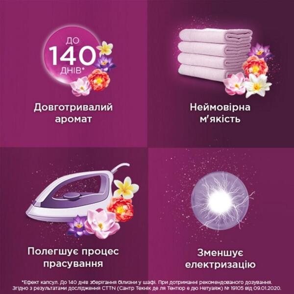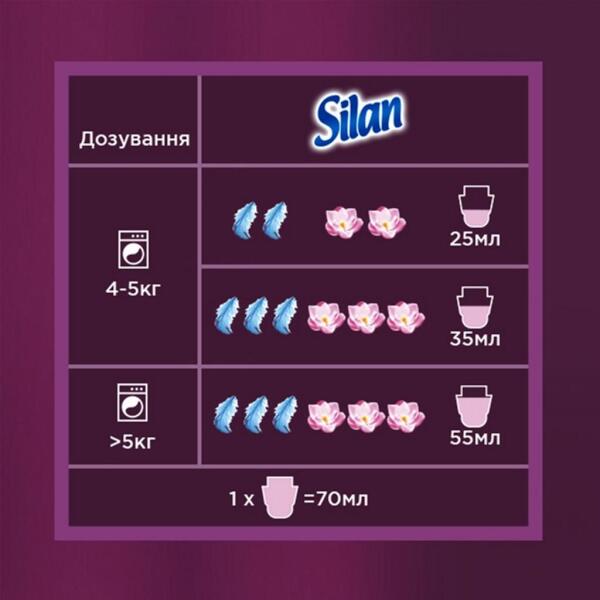 Silan Ароматерапия с 4 идеально сбалансированными ароматами, которые хранятся до 140 дней, была специально разработана для того, чтобы заботиться о мягкости вашей одежды и дарить невероятные ароматы. Формула содержит драгоценное масло, которое расслабляет. Уникальные двойные парфюмированные капсулы Silan активируются во время каждого движения, создавая свежий аромат. Используйте Silan Ароматерапия во время каждой стирки и наслаждайтесь длительным ароматом и мягкостью одежды!