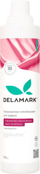 - Кондиционер-ополаскиватель DeLaMark с ароматом черной вишни, замши и табака 0,75 л