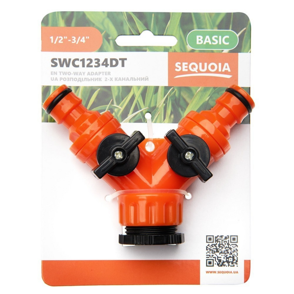 Описание товара Коннектор для шланга SEQUOIA SWC1234DT разделитель двухклапанный 1/2'-3/4' пластик 0.06кг