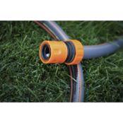 Совместимость со шлангами диаметром 3/4" делает коннектор универсальным для стандартных садовых решений. Соединение фиксируется плотно, снижая вероятность протечек.