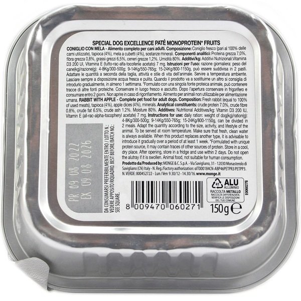 Описание Консервы для собак Monge SDE Dog Fruit кролик с яблоком, 150