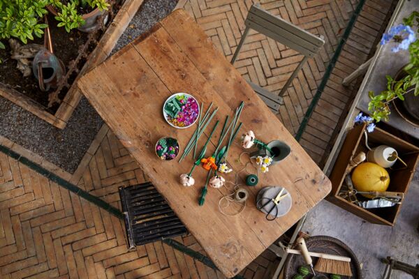 Каждая деталь букета сделана из элементов LEGO, и все их можно менять, чтобы создавать свою уникальную модель. У большинства цветов вы можете менять положение лепестков, так что вы можете собирать различные композиции. Разберите и пересоберите стебли, чтобы настроить высоту и форму цветов. Этот набор входит в коллекцию LEGO для взрослых и содержит несколько элементов из растительного пластика, который производится из возобновляемого сахарного тростника.