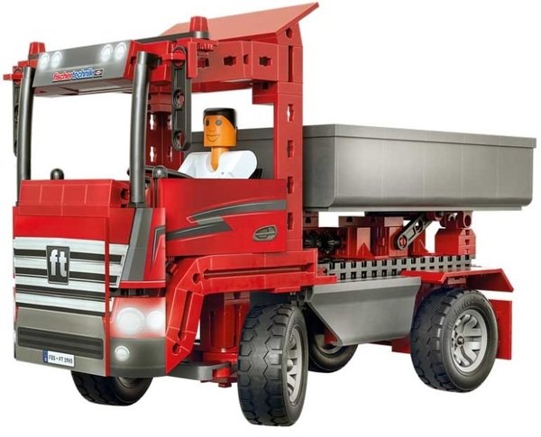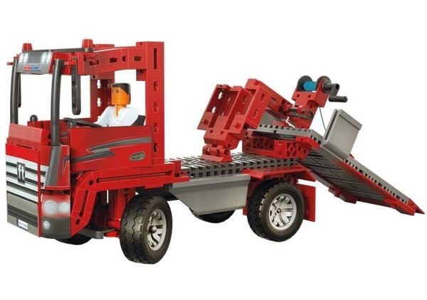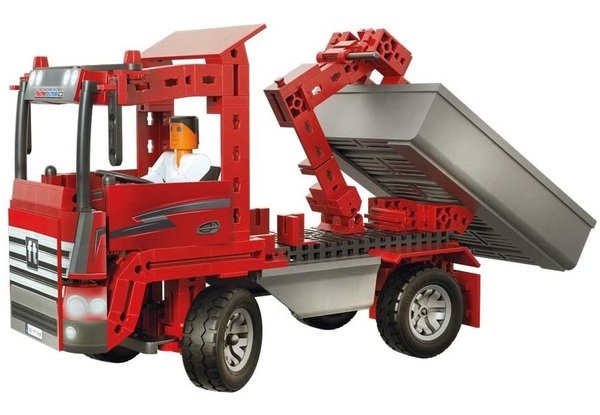 Добротный, полноценный грузовик, который увлекательно собирать вместе с ребёнком. Выполнен из качественного пластика. Кроме грузовика можно собрать и другие виды техники. Fischertechnik постарались продумать дизайн до мелочей. Готовые модели выглядят реалистично. Машины управляются при помощи беспроводных устройств, такие инновации очень удобны. Помимо мелкой моторики, развивает познания о мире техники. Сын получает удовольствие от игры с нестандартным конструктором. Современная и привлекательная игрушка.