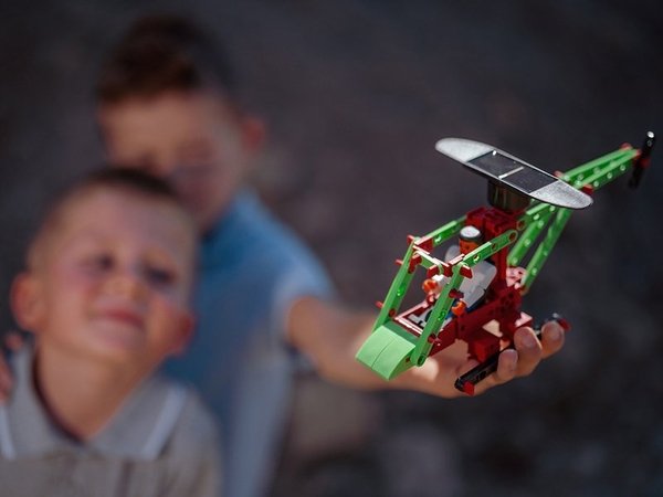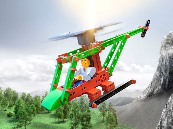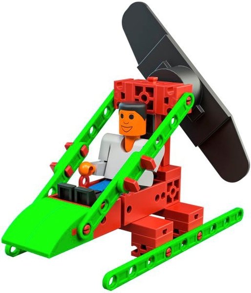 С помощью этого строительного набора дети смогут получить первый опыт использования возобновляемых источников энергии в увлекательной форме. Солнечный ротор, представляющий собой комбинацию солнечных батарей и двигателя, является ключевым компонентом трех моделей и использует энергию солнца для вращения пропеллера. Модели вертолета, воздушной лодки и вентилятора используют солнечную энергию для движения. Игровая фигурка, входящая в набор, привнесет еще больше веселья в игровую комнату.