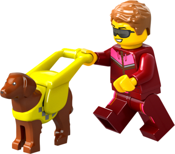 Дети получат игрушечный трамвай, станцию и 6 минифигурок, включая персонажей с собакой-поводырем и инвалидной коляской.