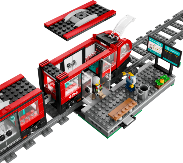 В этом наборе LEGO City «Трамвай и вокзал в центре города» собрано множество интересных функций для любителей игрушечных поездов и троллейбусов.