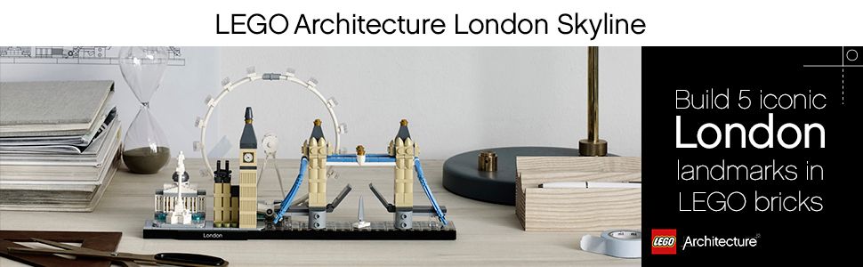 Коллекция Lego Architecture Skyline предлагает модели, пригодные для демонстрации дома и в офисе, и была разработана для всех, кто интересуется путешествиями, архитектурной культурой, историей и дизайном. Каждый набор масштабируется, чтобы точно отразить сравнительный размер каждого сооружения с реалистичными цветами. Этот набор содержит Национальную галерею, Колонну Нельсона, Лондонский глаз, Биг-Бен (башню Елизаветы) и Тауэрский мост, а завершает набор декоративная табличка с надписью «Лондон».