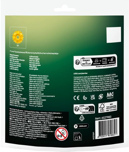 Посейте зерна творчества с конструктором LEGO Botanicals Полевые цветы. Эта композиция из полевых цветов цветет аутентичными деталями, и любители растений могут наслаждаться созданием семянок одуванчика, цветка одуванчика и колоска пшеницы, прежде чем выставить букет в спальне. Веселый проект для детей и любителей природы всех возрастов, этот набор цветов LEGO, подаренный по случаю или без, обязательно доставит радость. Цветы различаются по длине, но, как ориентир, одуванчик с семянками имеет более 19 см высотой.