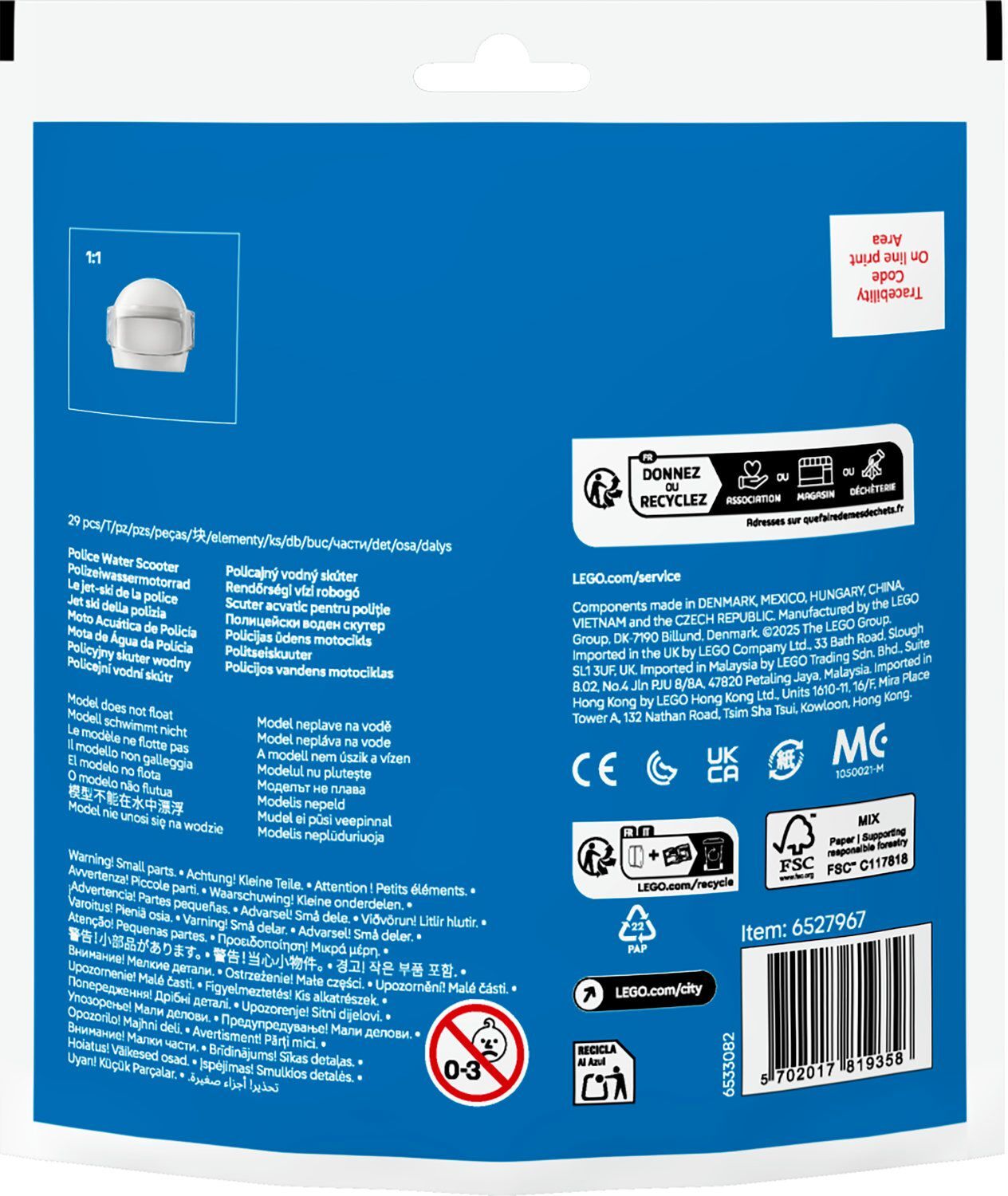 Отправляйтесь в захватывающие приключения на воде вместе с набором LEGO City «Полицейский гидроцикл». Минифигурка смелого полицейского в спасательном жилете, со шлемом и наручниками готова навести порядок даже среди волн.