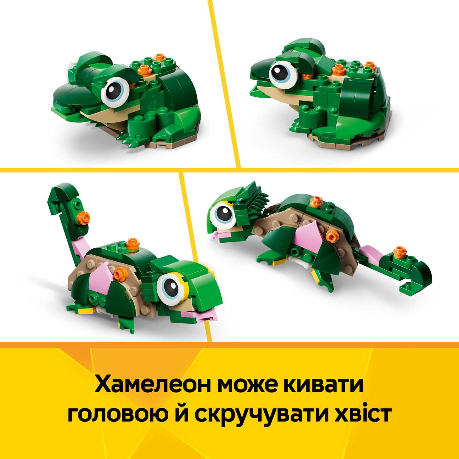 Возможно, это будет игрушечная черепаха с подвижной головой и ртом, которая дополняется красивым розовым цветком кувшинки. Затем ее можно перестроить в игрушку-хамелеона с подвижной головой и хвостом или лягушку с подвижным ртом. После окончания игры любую из моделей можно использовать как интересный элемент декора комнаты.