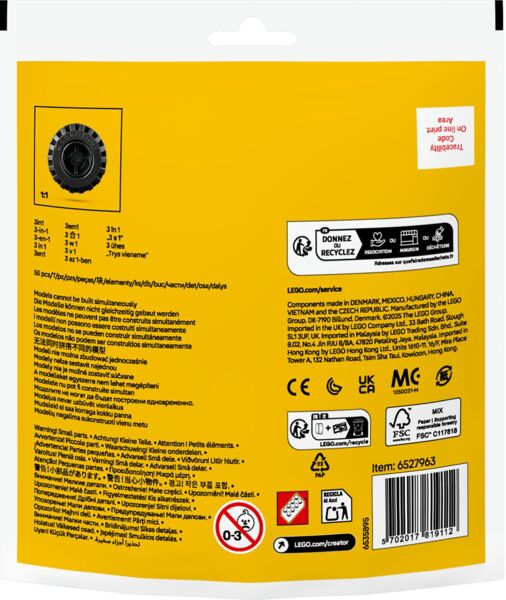 Порадуйте поклонников транспортных средств этим блестящим конструктором LEGO Creator Грузовичок-монстр с откидной крышей 3-в-1. Его можно превратить в небольшой автомобиль для гонок или самолетик для игры и демонстрации. Играя в различные сюжетно-ролевые игры с конструкторами LEGO, дети развивают мелкую моторику и социально-эмоциональные навыки. Этот набор станет по-настоящему интересным подарком для поклонников транспортных средств, для фанатов конструкторов LEGO.