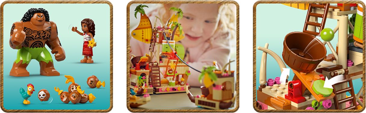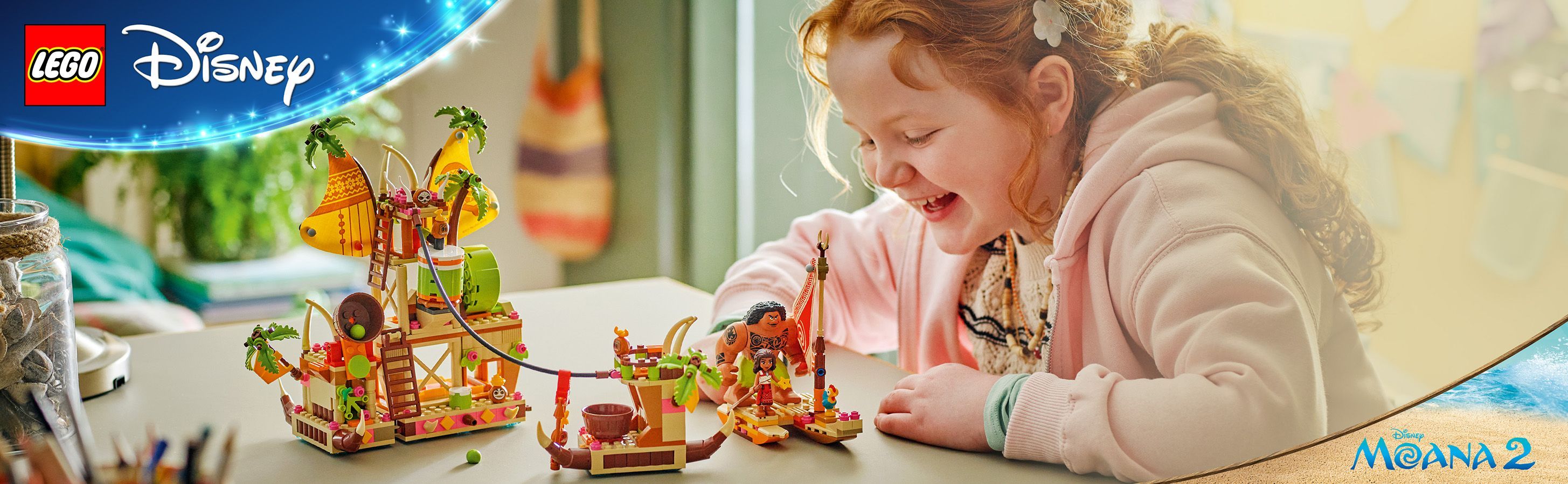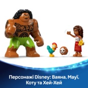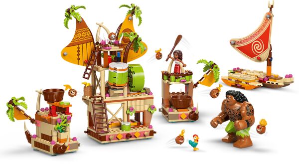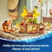 В этом наборе представлена большая лодка из Disney Moana 2: баржа, на которой есть катапульта, секретные тайники, сундук с сокровищами и зиплайн - и которая разделяется на 3 маленькие лодки! Кроме того, есть двухкорпусное каноэ со скрытым ящиком. В этом конструкторе также есть 9 персонажей LEGO Disney: Моана, Мауи, цыпленок Хейхей, Коту и еще 5 Какамор.