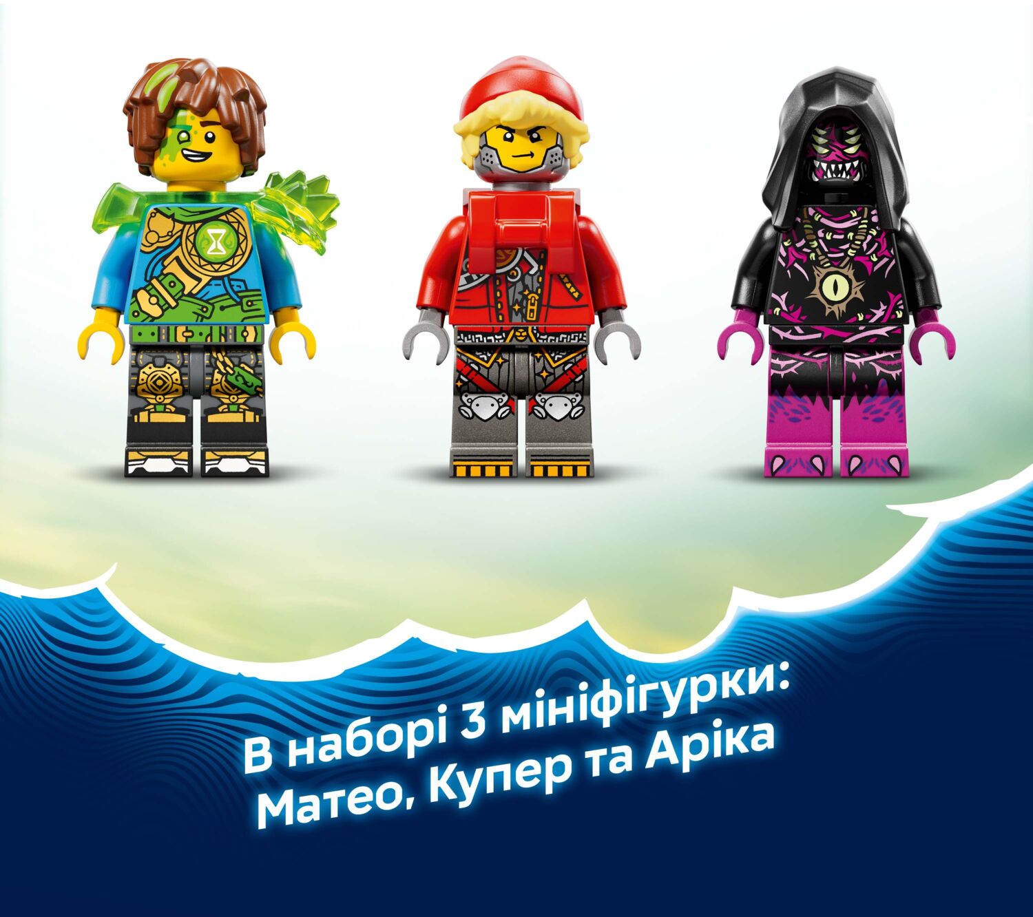 В набор также входят минифигурки Матео, Купера и Арики, которые побуждают к игре, а Матео держит коллекционный зеленый меч. Еще здесь есть фигурка Зет-Блоба и 3 пауков, а также розовое алмазное яйцо, искаженное Императором кошмаров — из него вылупляется коллекционная игрушка: оранжевое Сокровищное существо.