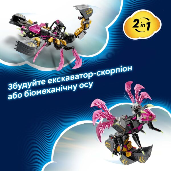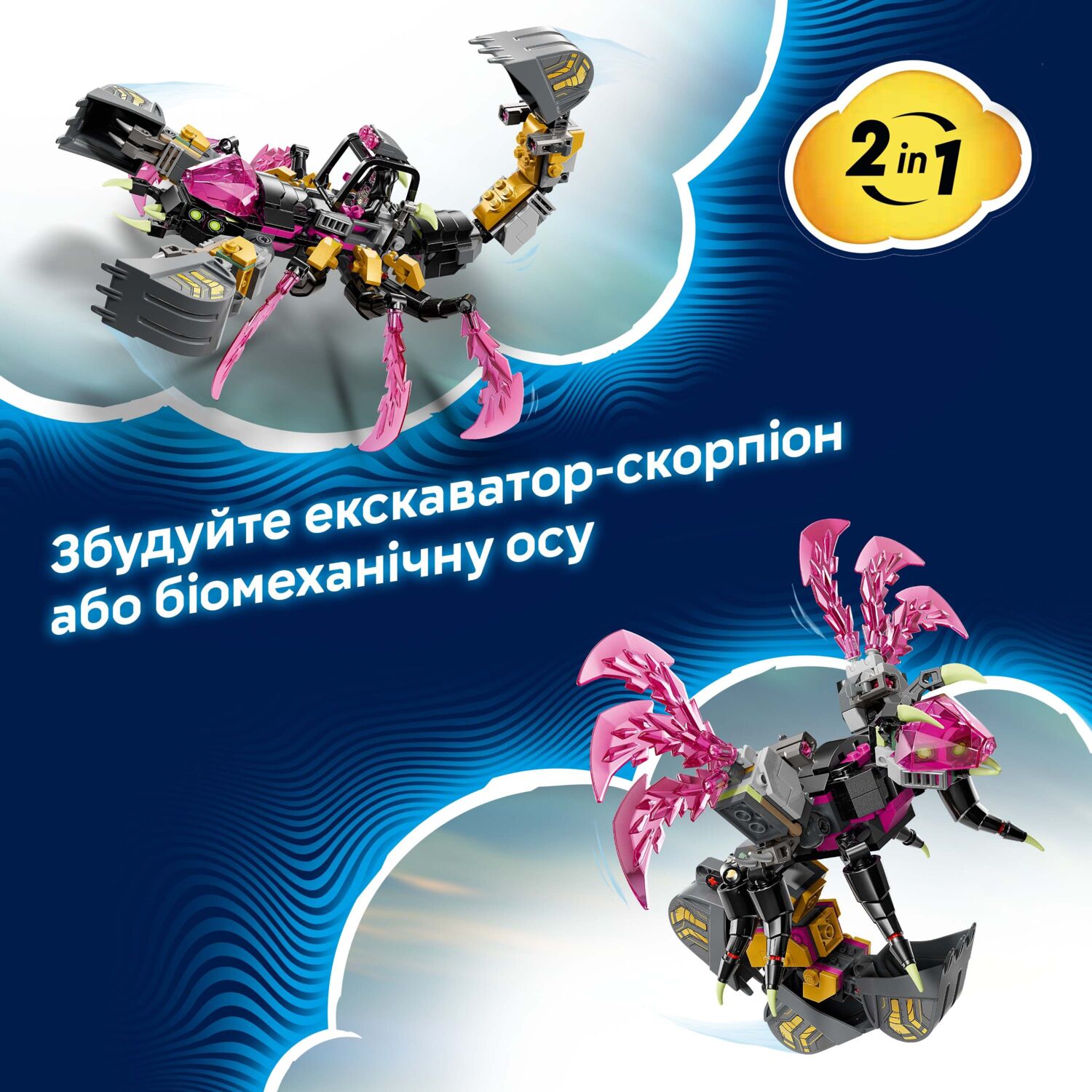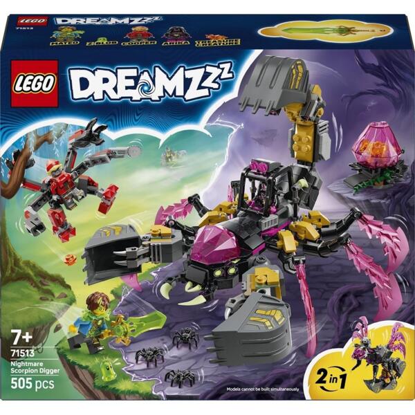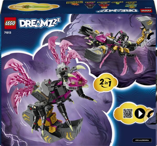 Развивайте воображение с этим замечательным набором для конструирования LEGO DREAMZzz "Кошмарный землекоп-скорпион" (71513) для мальчиков и девочек в возрасте от 7 лет. Он предлагает 2 варианта сборки, поэтому дети могут собрать игрушечного землекопа-скорпиона или биомеханическую осу.