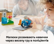 В набор входят фигурка полицейского, игрушечный кирпич в виде светофора и 2 конуса. Благодаря большим цветным игрушечным кирпичам, веселым историям и разнообразным персонажам наборы LEGO DUPLO разработаны так, чтобы удовлетворить естественную любознательность малышей и помочь им достичь важных этапов развития. Этот набор помогает детям тренировать мелкую моторику, когда они сажают полицейского на игрушечный мотоцикл и ездят на нем вокруг конусов.