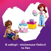 Набор содержит 2 минифигурки, Пейсли и Лео, которые разжигают воображение детей и побуждают их к ролевым играм. Набор содержит подарок на день рождения, игрушечный торт, воздушный шарик и пончик. Благодаря множеству интересных деталей игровой набор стимулирует воображение и вдохновляет на рассказы. Развивающие игрушки LEGO 4+ содержат полезные элементы для быстрого старта — большие детали, которые помогают детям начать свое строительное приключение.