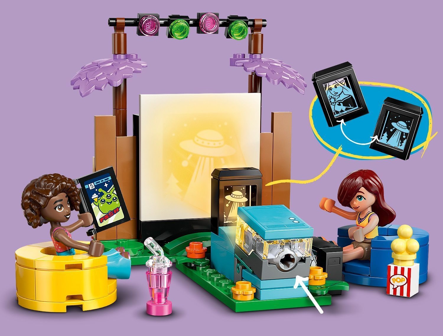 Эта игрушка для ролевых игр комплектуется минифигурками Пейсли и Алии, которые вдохновляют детей создавать различные социальные ситуации, когда друзья смотрят фильмы в саду.