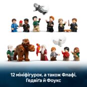 12 минифигурок, в том числе фигурки Гарри Поттера, Гермионы Грейнджер, Невилы Лонгботтом, профессора Кеттлберна, почти безголового Ника и Албуса Дамблдора, а также фигурки Флафи, Хедвиги и Фоукса.