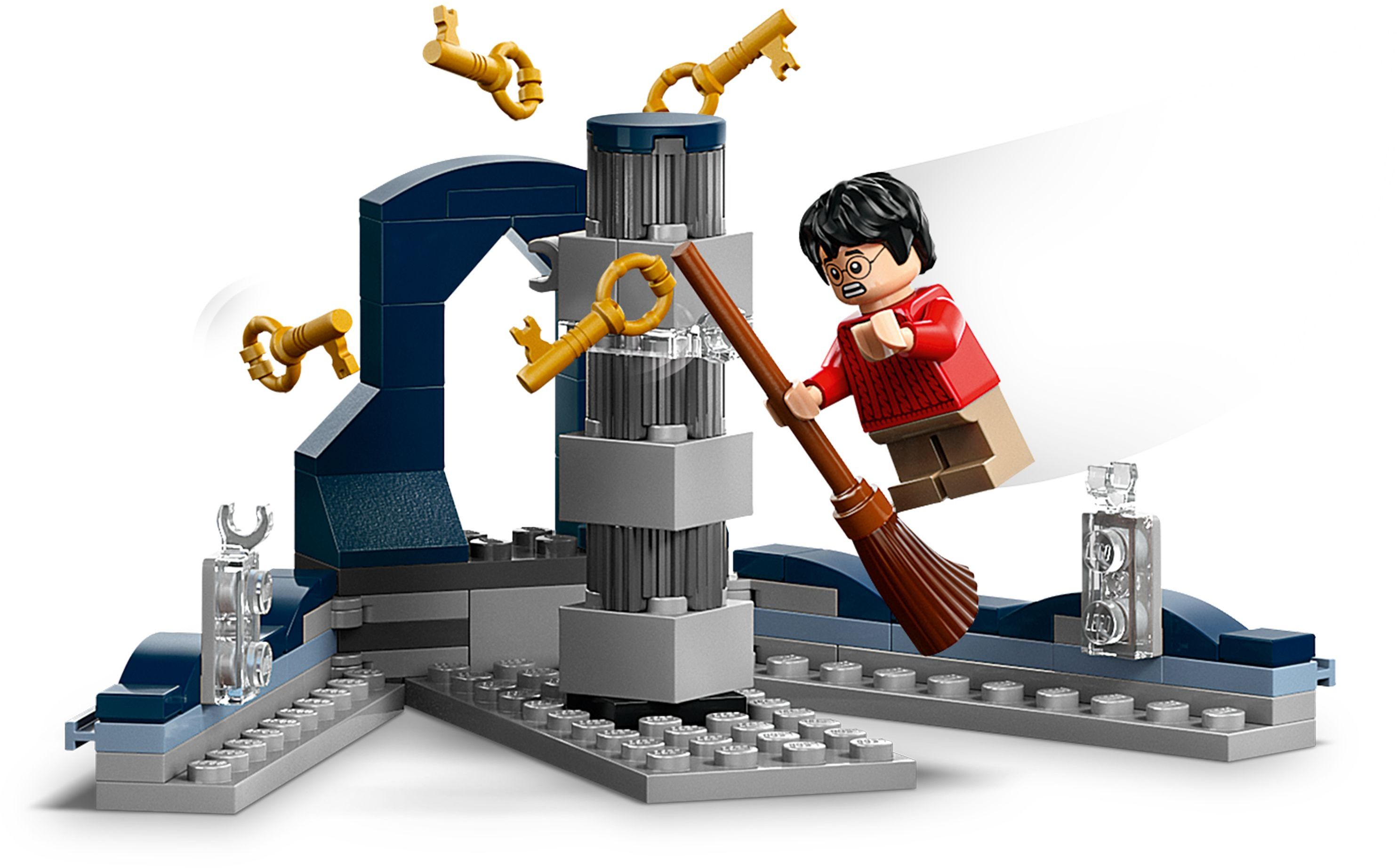 Игрушечный замок - комнаты с летучими ключами и волшебными шахматами в скалистом основании замка отсоединяются для удобной игры. Также обратите внимание на 6 из 14 коллекционных портретов Хогвартса.