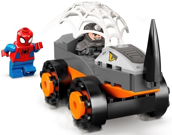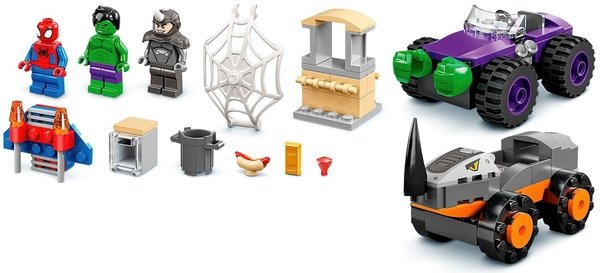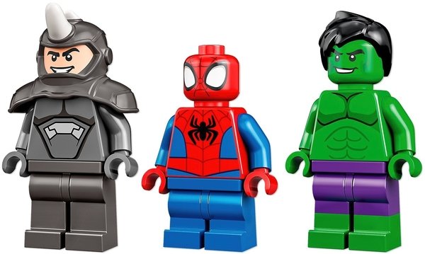В комплект входят минифигурки Халка, Спайди и Носорога.