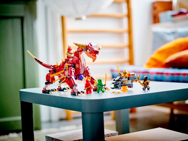 Дети могут воссоздать приключения из сериала NINJAGO Dragons Rising с помощью игрового набора с драконом-трансформером Хитвейвом.