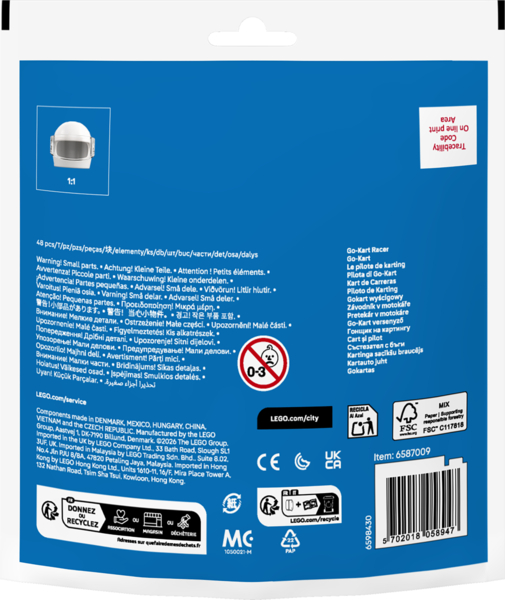 Развивайте воображение и навыки конструирования с набором LEGO City "Гонщик на картинге", который включает стильный низкопрофильный картинг с гладкими шинами и минифигурку водителя в шлеме.