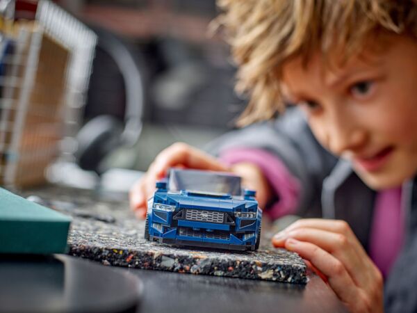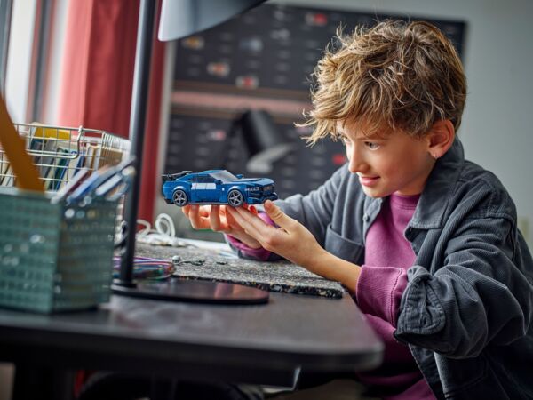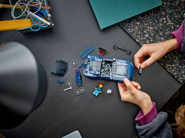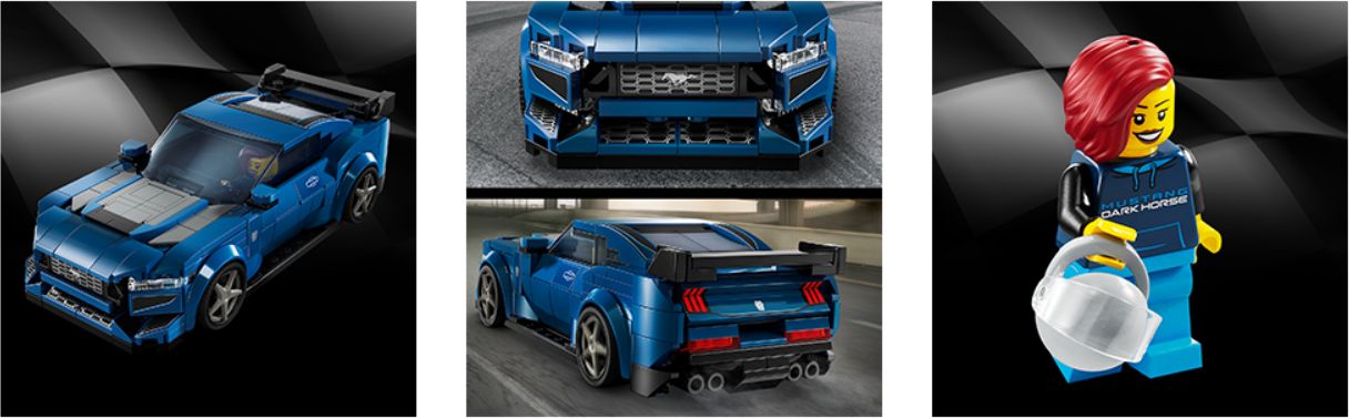 Поклонники LEGO могут посадить мини фигурку водителя за руль для быстрых приключений вместе со спортивным автомобилем Ford Mustang Dark Horse.