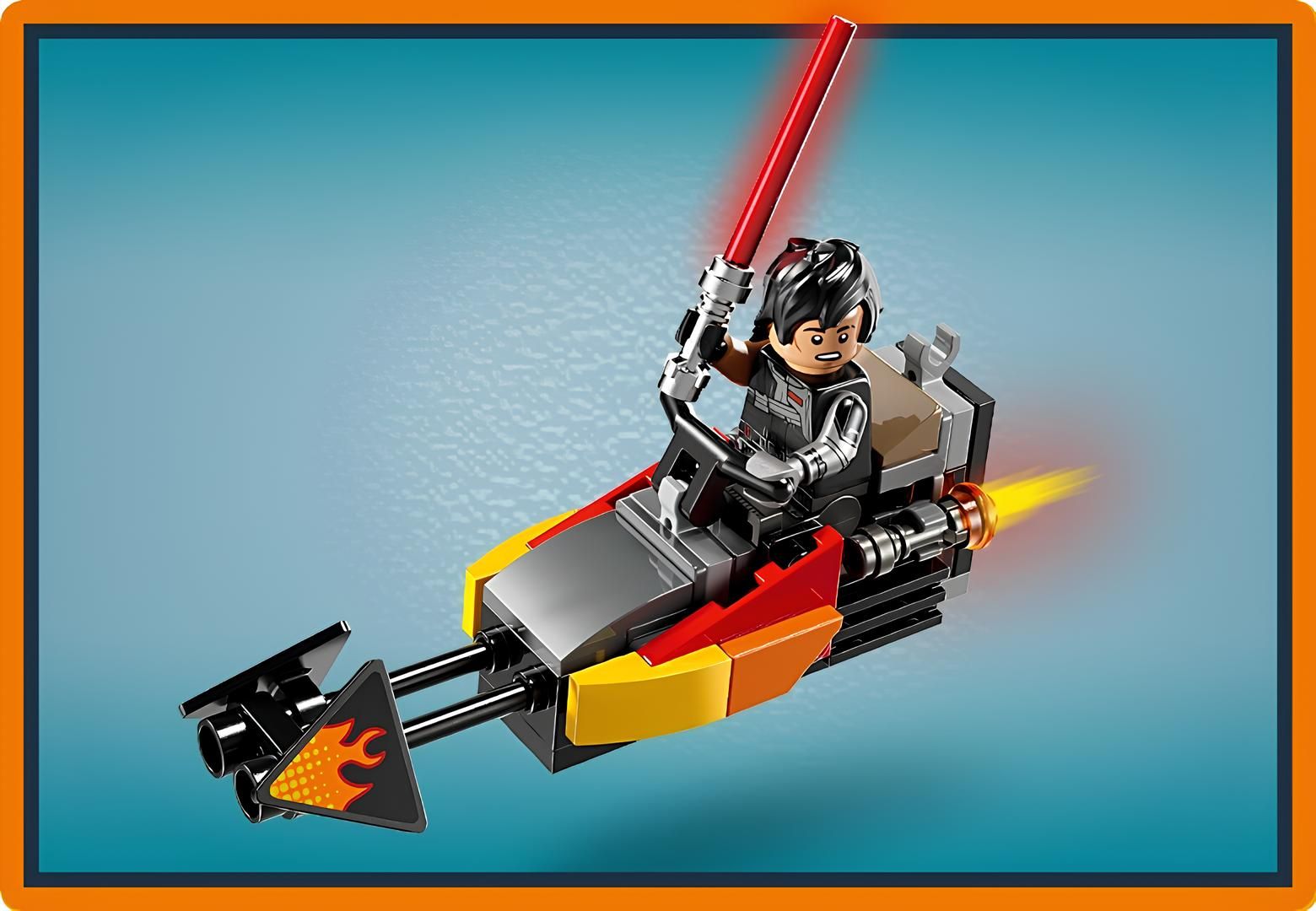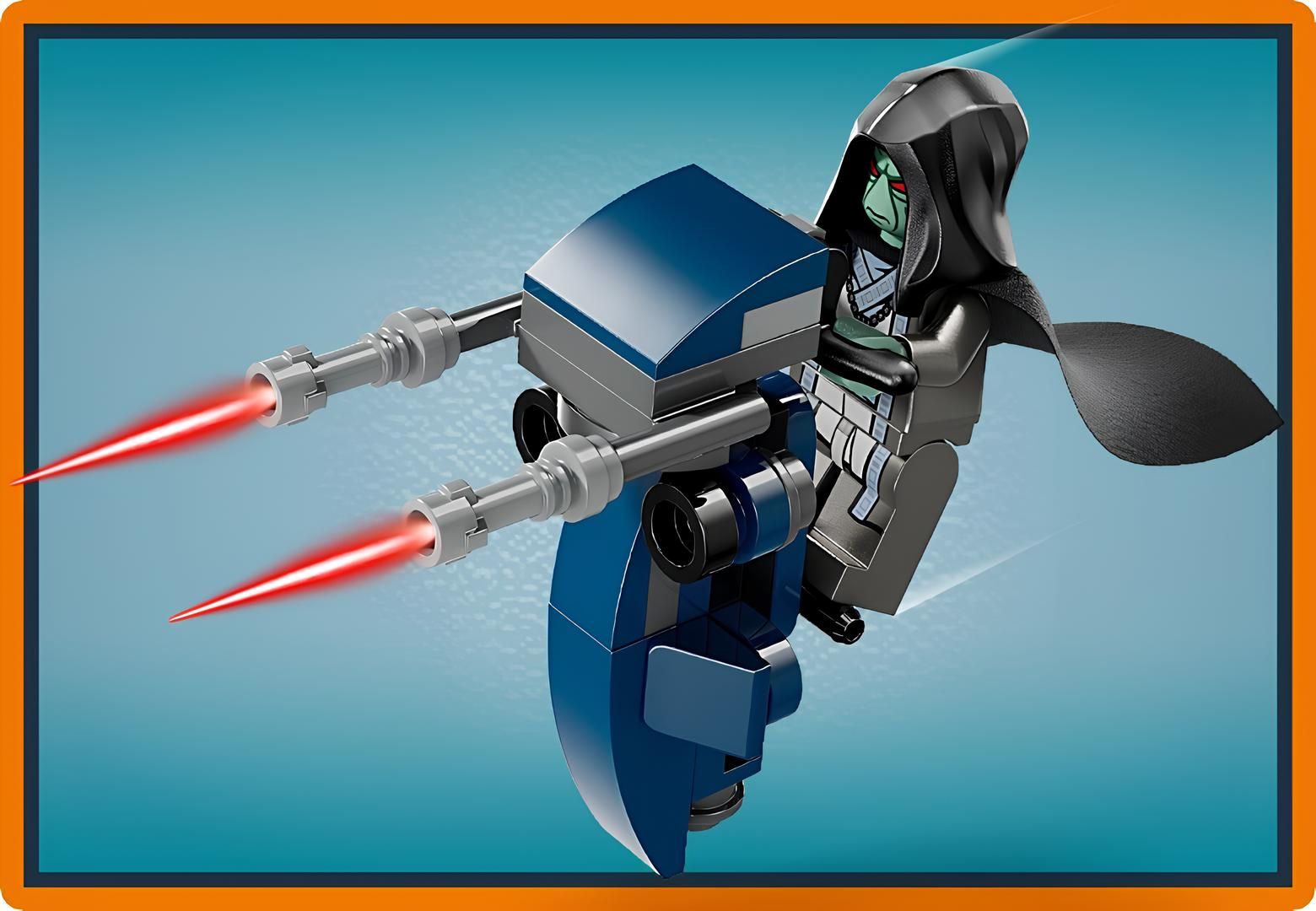 Эта конструкторская игрушка содержит уникальный звездолет, мотоцикл-спидер и STAP, которые вдохновляют детей на создание собственных фантастических приключений.