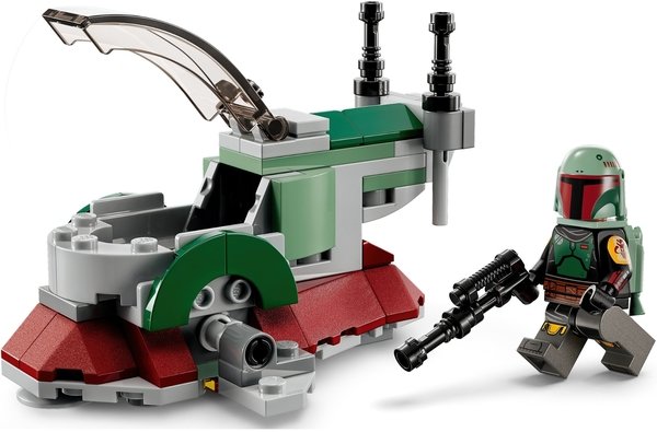 Эта микромасштабная версия культового космического корабля LEGO из классической саги о «Звездных войнах» «Звездные войны : Мандалорец» и «Звездные войны : Книга Бобы Фетта» оснащена двумя манипуляторами для атаки вражеских истребителей и регулируемыми крыльями для полета и посадки. Минифигурка Бобы Фетта, входящая в комплект поставки, поставляется с бластером и реактивным ранцем и помещается в открывающуюся кабину.