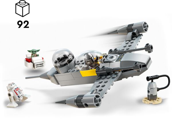 Звездный истребитель имеет основу из кирпича Starter Brick для легкого конструирования, открывающуюся кабину для мандалорца и пассажирское место для Грогу.