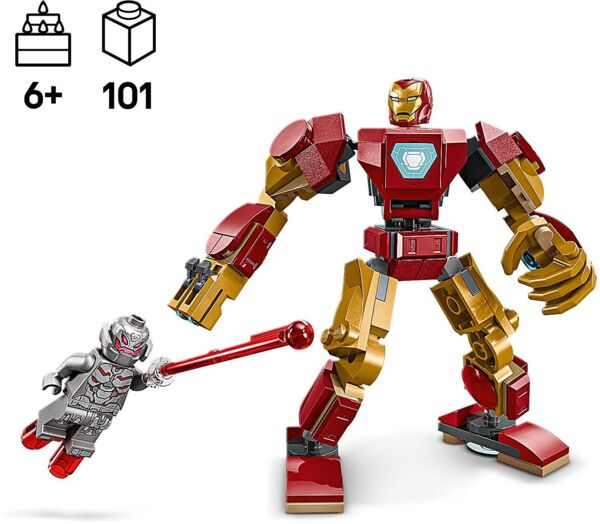 Робот Железного Человека против Альтрона — это остросюжетный сборный набор LEGO Marvel для детей от 6 лет, которым нравятся супергерои и практичные конструкторские приключенческие игрушки. Этот игровой набор LEGO Marvel поставляется с 2 мини фигурками: Железным Человеком с откидным шлемом и двусторонней головой, демонстрирующей различные выражения лица, и Альтроном с лазерным лучом. Собранный робот имеет подвижные руки, ноги и пальцы, а также держит шиповый шутер в правой руке. Туловище открывается, предоставляя доступ к кабине, где может сидеть мини фигурка Железного Человека.