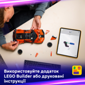 К набору прилагается код, который можно использовать для разблокировки цифровой версии этого автомобиля LEGO Technic в онлайн-игре Asphalt Legends.