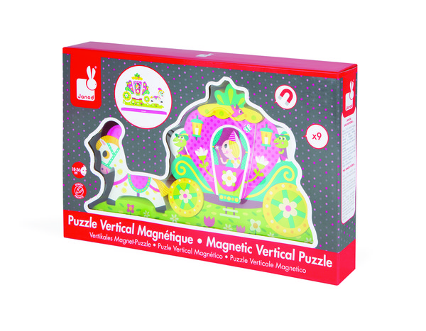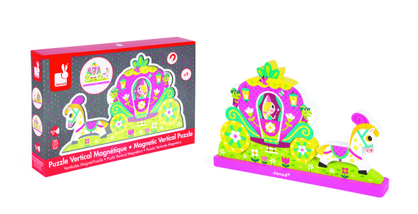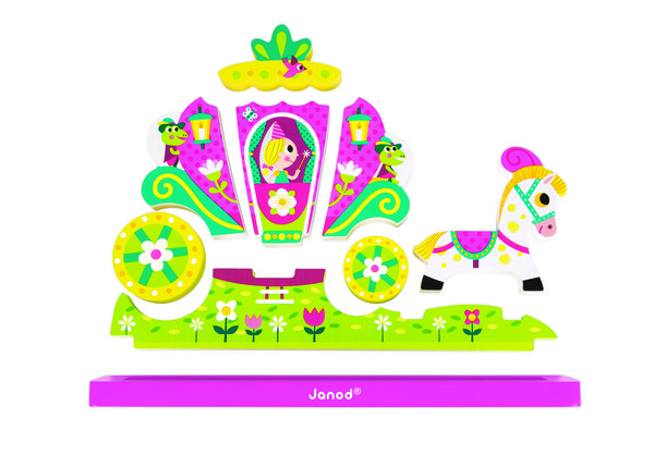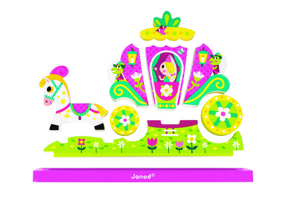 Объемный магнитный конструктор Janod с изображением маленькой принцессы, которая мчится на карете прекрасно украшает комнату моей дочки. Яркий дизайн готовой конструкции поднимает настроения всем, кто заходит в наш дом. Очень просто его складывать, в комплекте удерживается прочно, магниты хорошие по качеству, а объемная форма каждой детали делает его не похожим на другие подобные игрушки. Деревянные детали покрыты качественным слоем краски, безопасные для использования малышами, не токсичны и состоят лишь из экологически чистых материалов. Рекомендовала взять эту игрушку моя сестра, я покупала на этом сайте. Развивает фантазию у ребенка, помогает формировать чувство прекрасного.