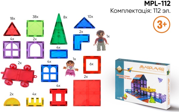 Конструктор Magplayer магнитные плитки 112 ел. (MPL-112)