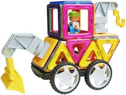 Детский магнитный конструктор MagPlayer состоит из 64 ярких частей в форме некоторых геометрических фигур: треугольников, квадратов и тому подобное. Также в набор входят различные детали, с помощью которых можно создать собственный экскаватор или множество других фигур. Части конструктора отличаются надежной фиксацией между собой. Инструкция, входящая в упаковку, содержит схему, которая позволит ребенку создать уникальные конструкции.