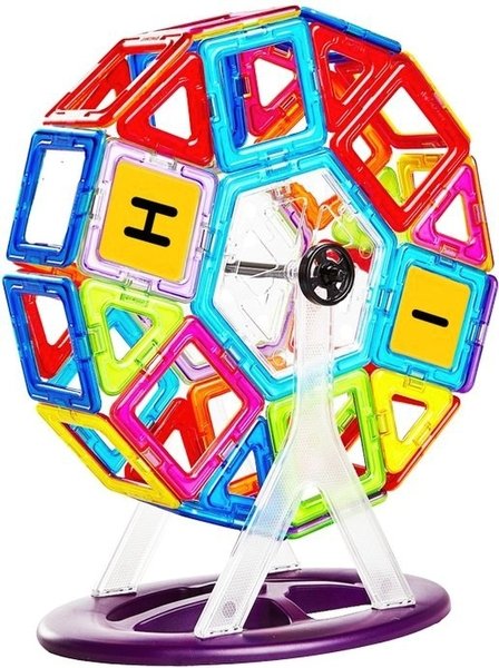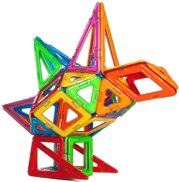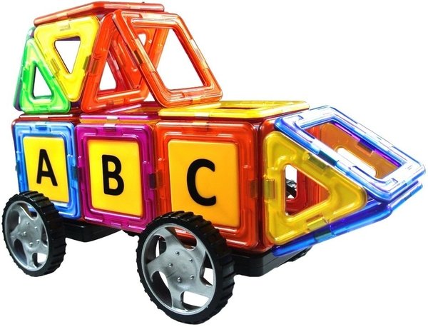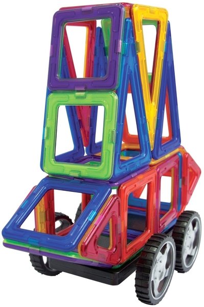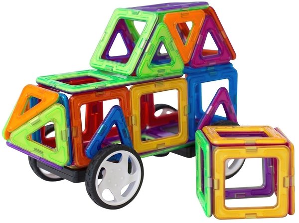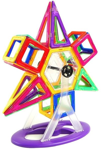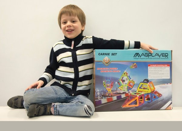 Конструктор простой и довольно интересный, он яркий и красочный, а собирать можно все что угодно, и даже без шаблона. Детали крепятся на небольшие магниты встроенные в них, тут есть треугольники, квадраты, ромбы, даже есть колеса и буквы, чтобы ребенок мог строить не только простые фигуры. Мой сын создает машинки, роботов, города из него, вообщем все что так нравится мальчишкам. Для меня достаточно того, что детали полностью безопасные, края не острые и сломать их довольно сложно, так что риск поранится сводиться к минимуму. Заказывала я Магплеер на этом сайте, по совету мужа взяла, он давно хотел такой взять сыну. Мне все нравится, а ребенку тем более, так что претензий нет.